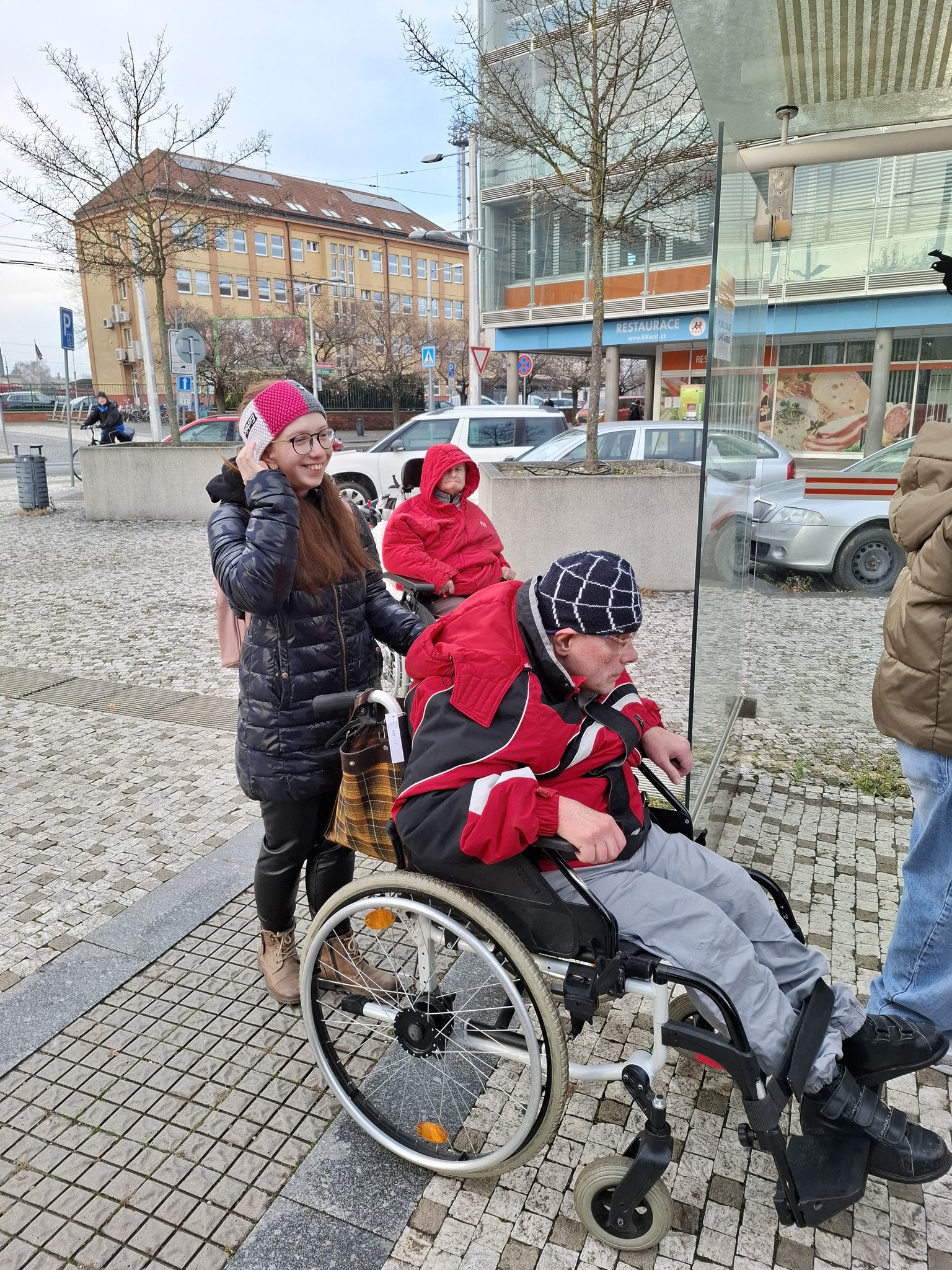 Naši studenti (Nicol, Kuba, Anička, Ema a Natálka) oboru sociální činnost doprovodili ve dnech 13. a 20. listopadu dvě skupinky klientů z Domova bez bariér, kteří vyrazili do Hradce Králové na tradiční vánoční nákupy. Po celý den se dle slov sociální pracovnice Bc. Vrabcové s úsměvem starali, pomáhali s výběrem a trpělivě čekali u kabinek. Jsme na naše studenty hrdí a těší nás, že se aktivně zapojují do dobrovolnických aktivit, které mají skutečný smysl. Moc děkujeme!