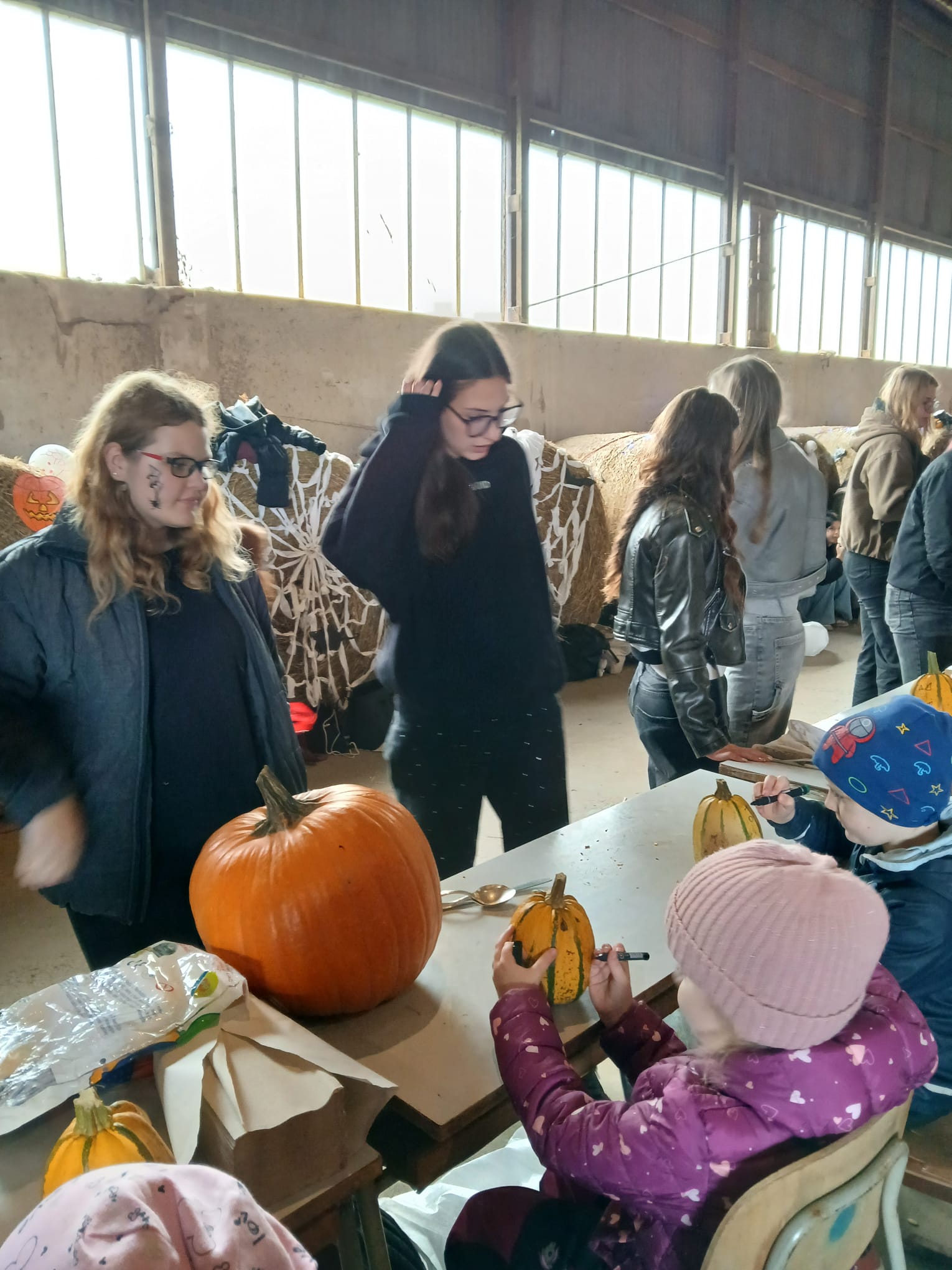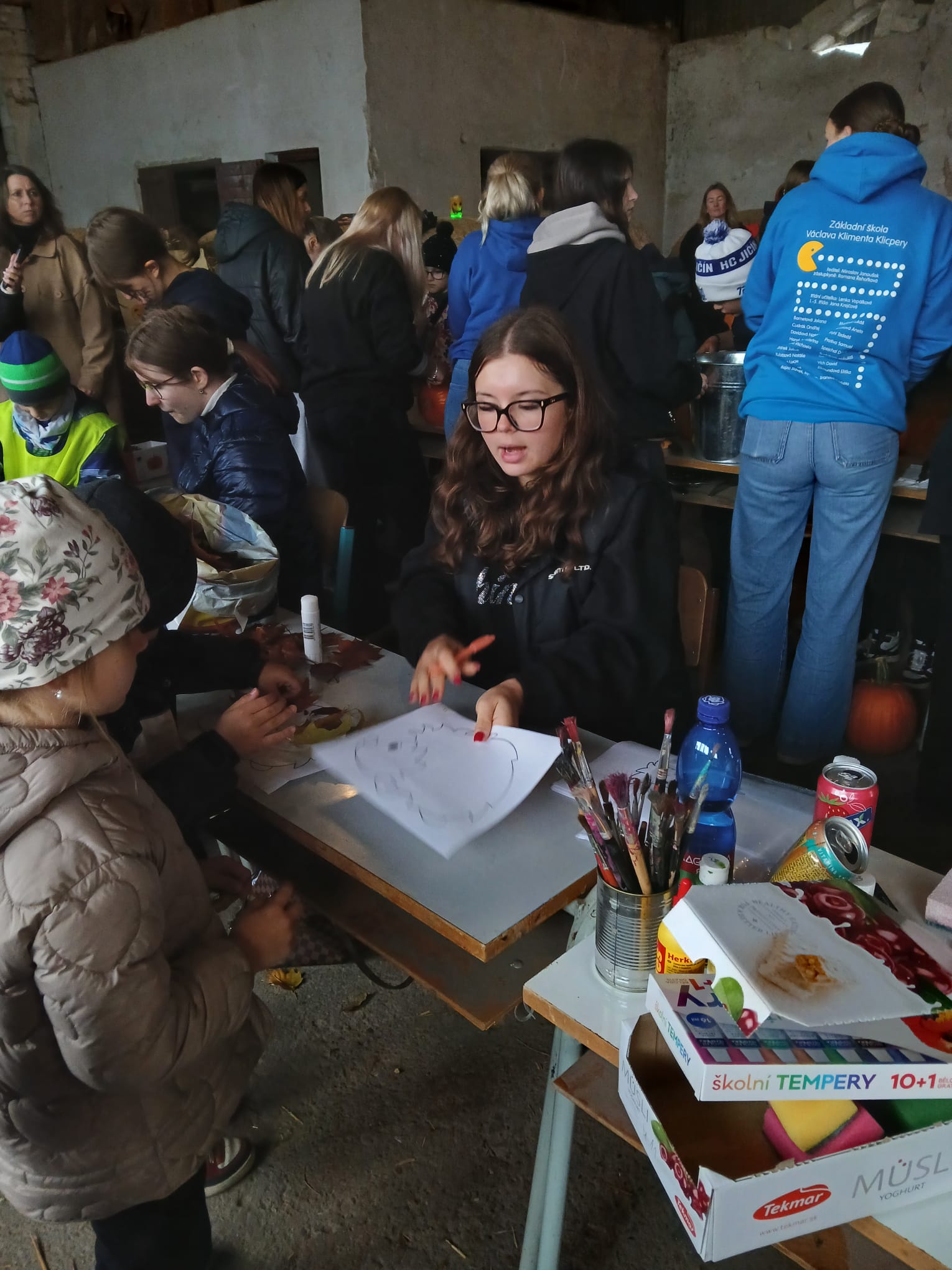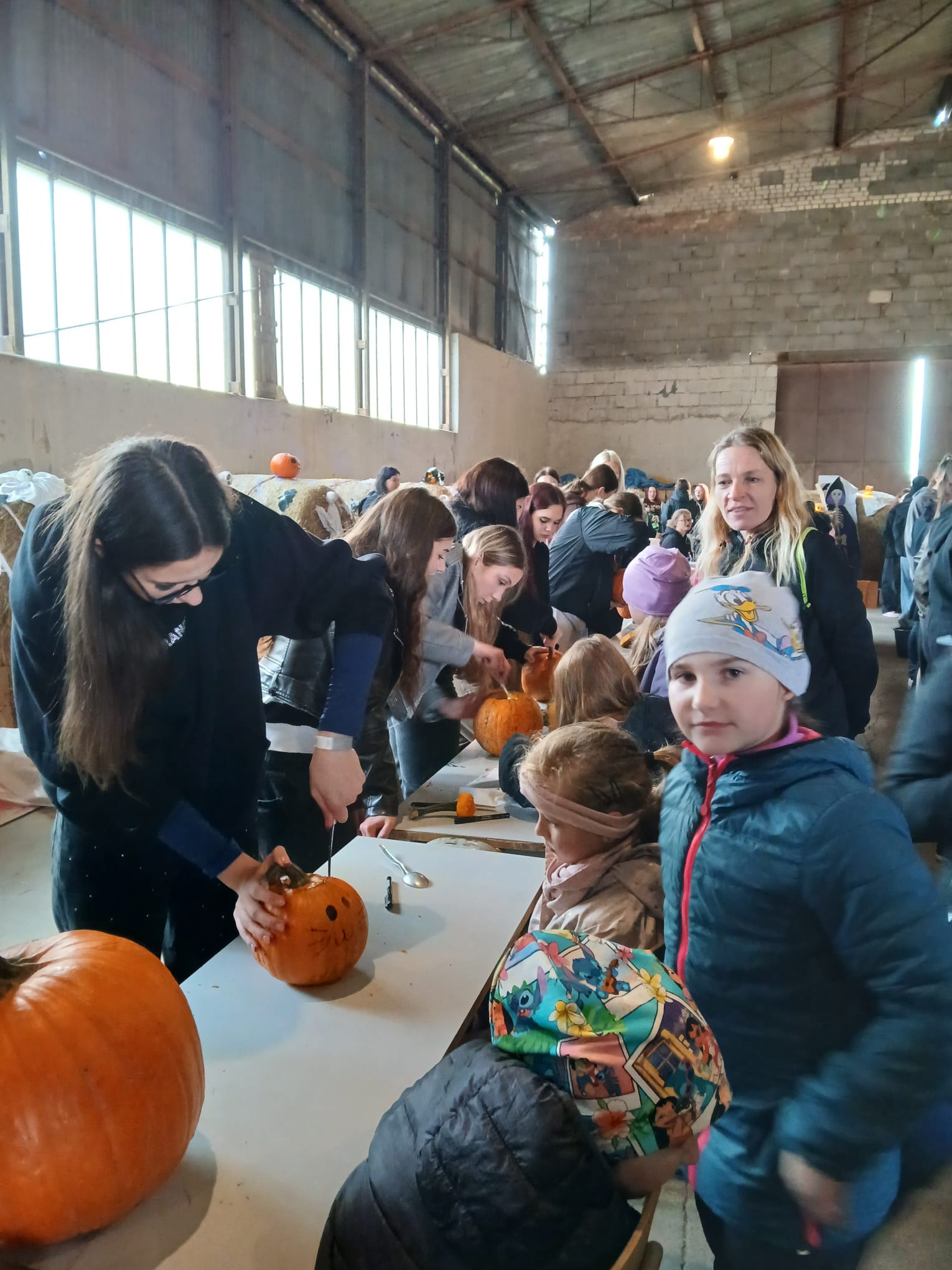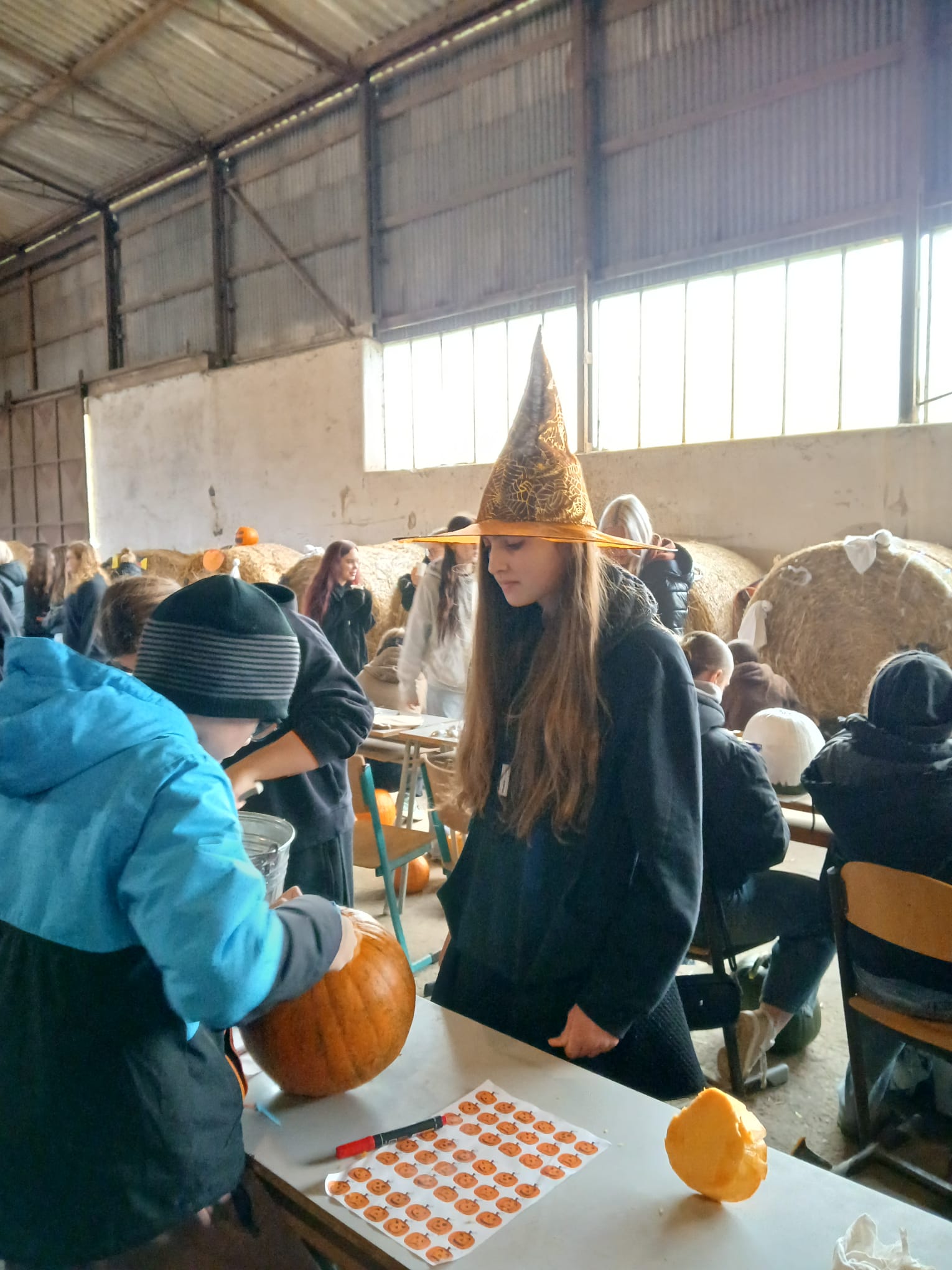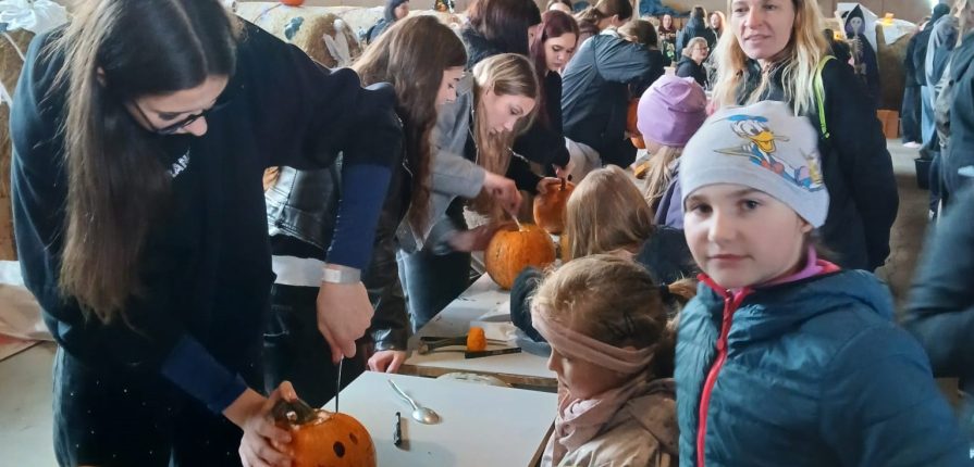 Dnešní dopoledne si na statku užily děti mateřských a základních škol. Studenti oboru sociální činnost a ošetřovatel měli pro děti připravené dopoledne plné tvoření, hudby, tance a dlabání dýní.