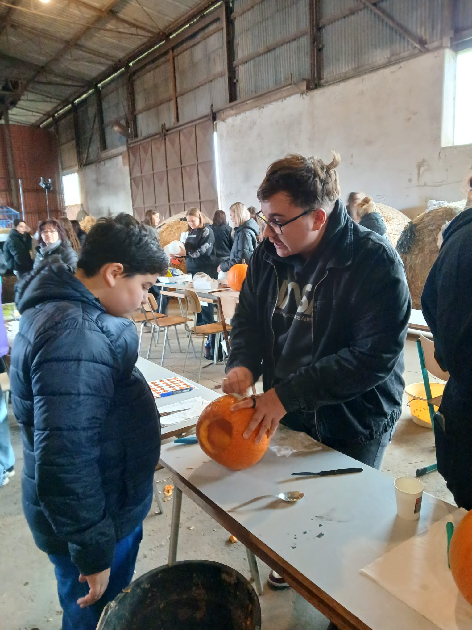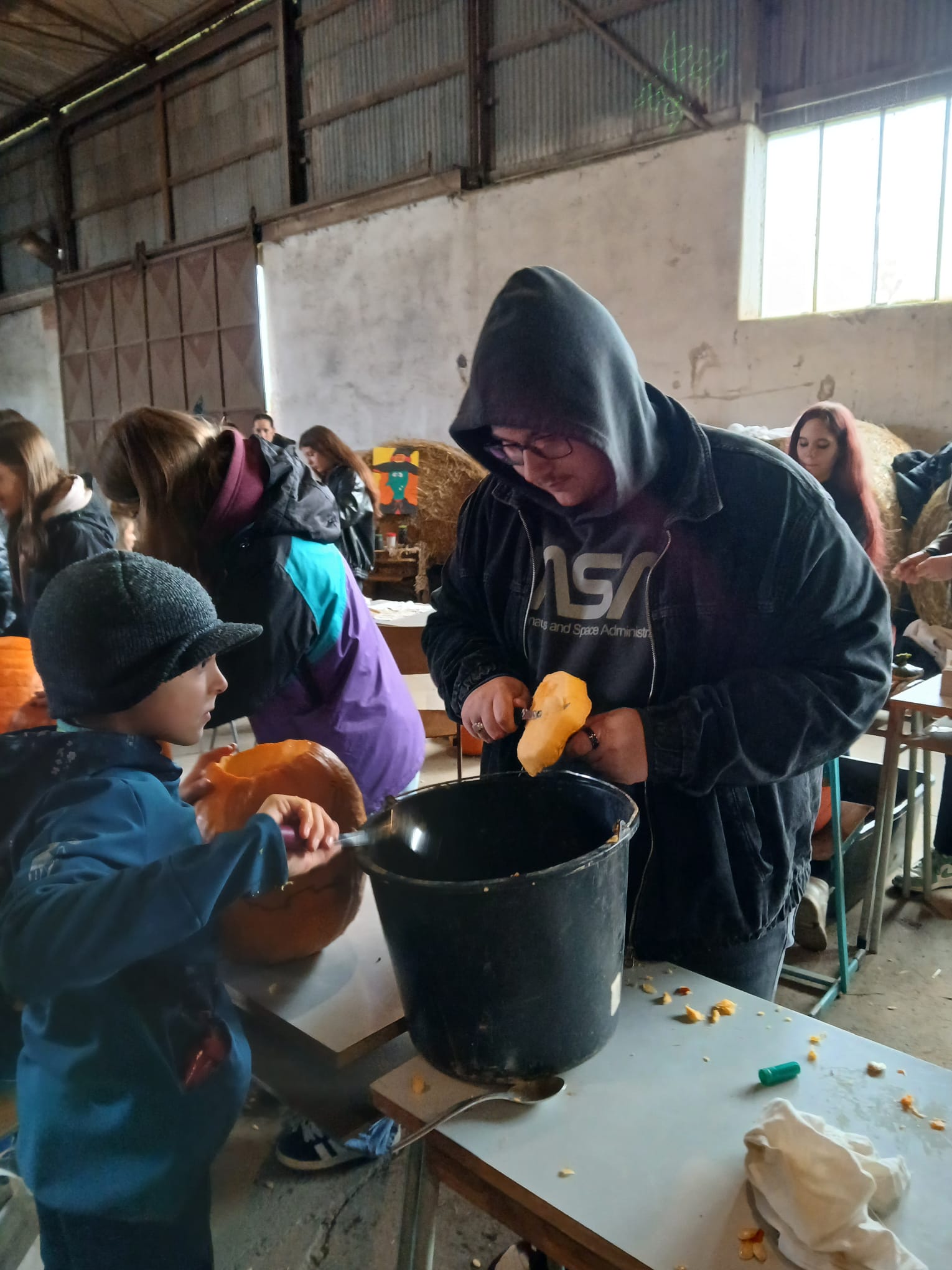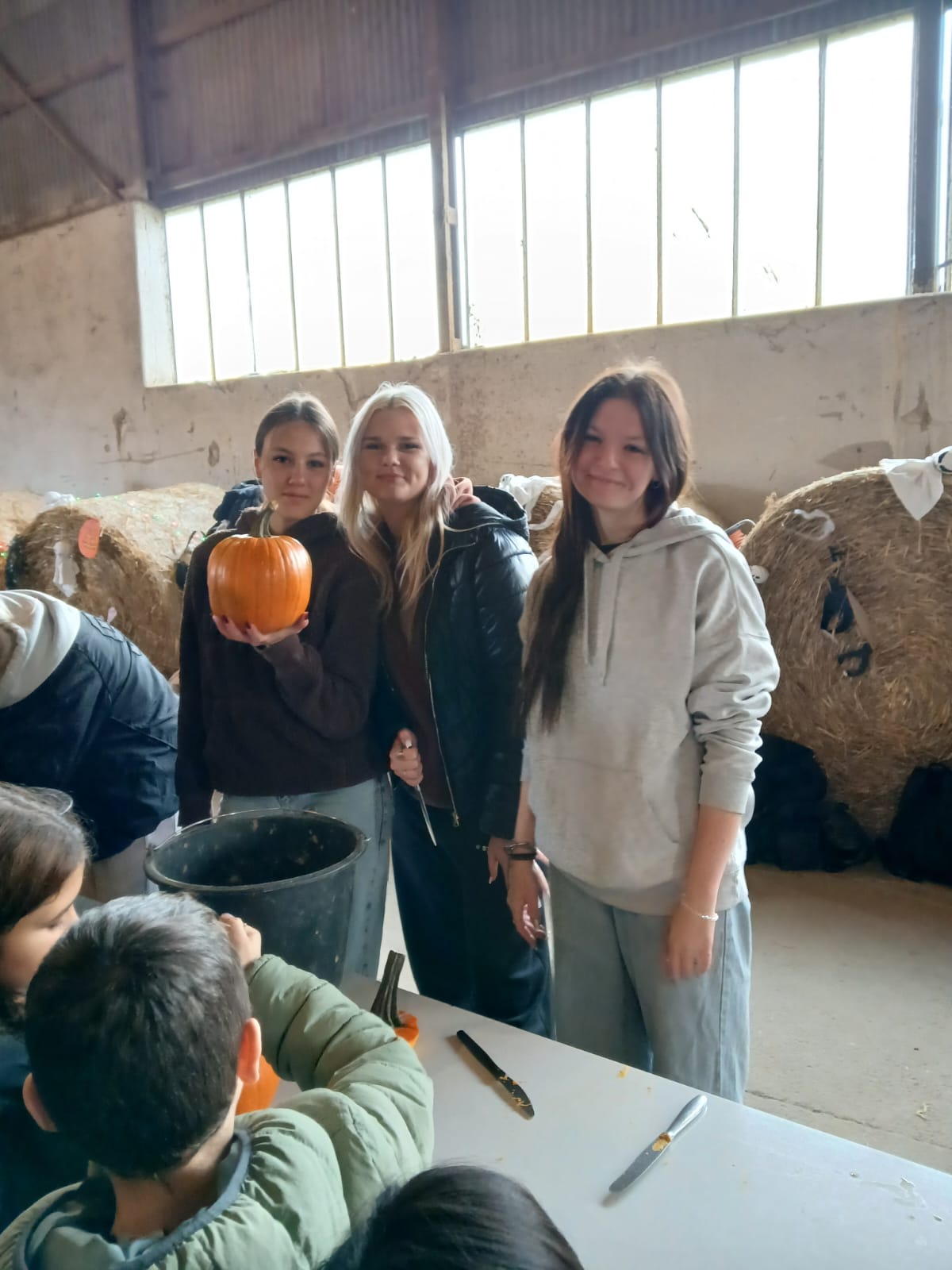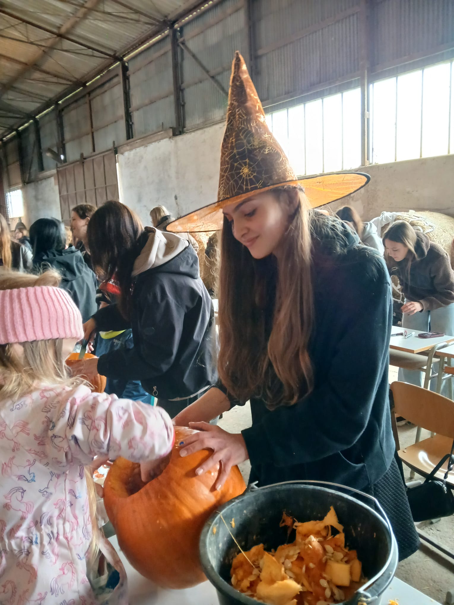 Dnešní dopoledne si na statku užily děti mateřských a základních škol. Studenti oboru sociální činnost a ošetřovatel měli pro děti připravené dopoledne plné tvoření, hudby, tance a dlabání dýní.