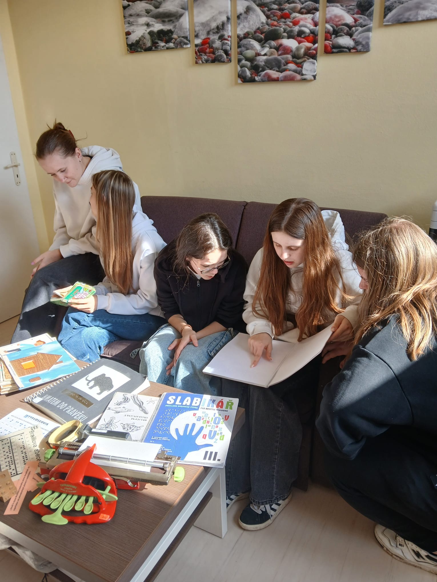 Během programu si vyzkoušeli různé pomůcky pro osoby se zrakovým postižením – například zvukovou vysílačku, bílou hůl, indikátor barev a další kompenzační pomůcky. Také si na vlastní kůži vyzkoušeli roli nevidomého (pomocí brýlí simulujících různé zrakové vady) i roli průvodce, což jim pomohlo lépe pochopit každodenní situace lidí se zrakovým hendikepem.