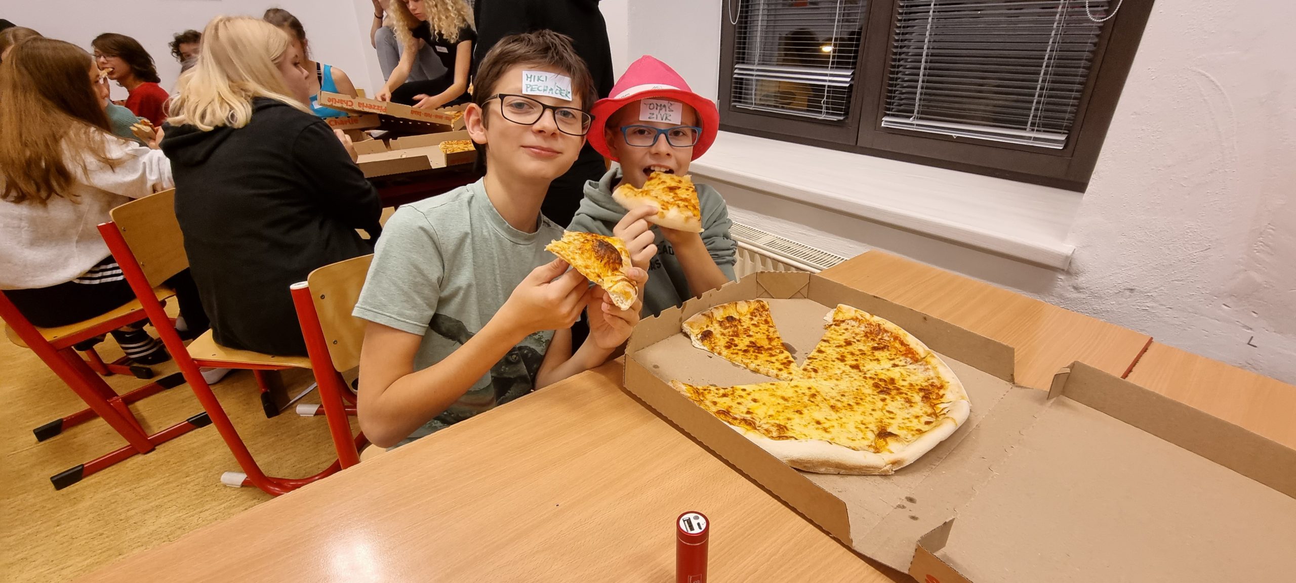 Začali jsme večeří, jak jinak. S plným břichem se i strachu vzdoruje lépe. Objednali jsme si pizzu, zahráli pár her a pustili si film, zatímco my, kvartáňi, pro ně připravovali stezku odvahy. A opravdu jsme si dali záležet! Strašidelné kostýmy, svíčky, tajemné zvuky a stíny… Zkrátka stezka odvahy jak má být!