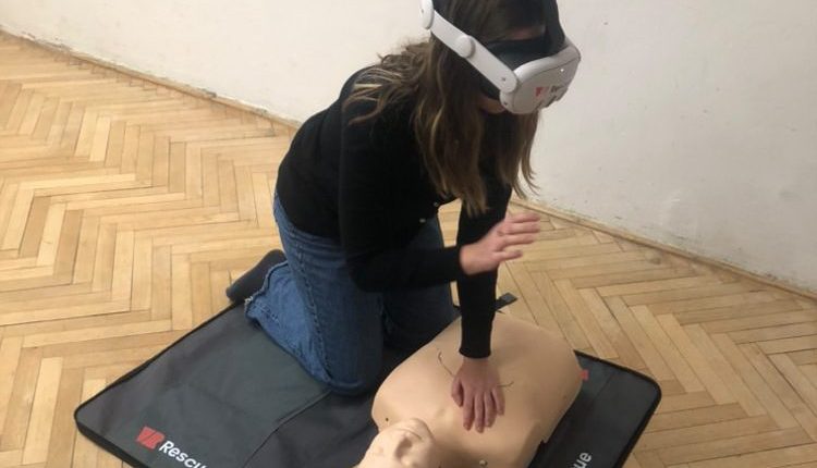 • 💙 vyzkoušet si nácvik resuscitace ve virtuální realitě, což jim umožnilo zažít realistické modelové situace první pomoci,
