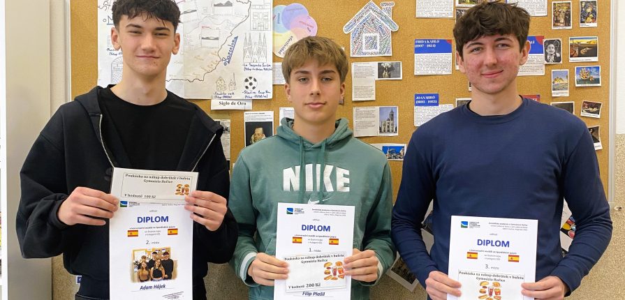 V minulém týdnu proběhlo školní kolo konverzační soutěže ve španělském jazyce. Porota hodnotila jazykovou pohotovost a kreativitu, bohatost slovní zásoby, výslovnost, gramatickou správnost a plynulost vyjadřování.