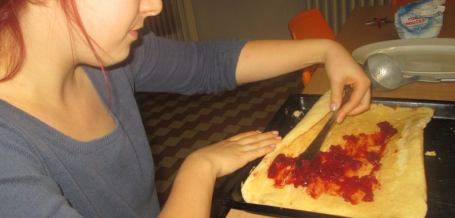 22. 11. 2018 DM Šalounova – Naše Lucka se učila péct piškotovo třešňovou roládu s paní vychovatelkou I. Douskovou =)