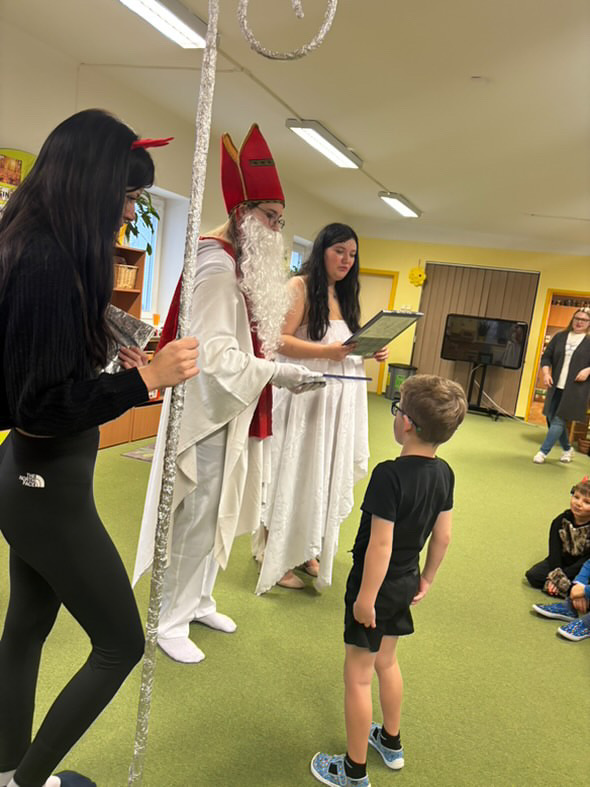 Studentky 2. ročníku oboru Sociální činnost spolu s vychovatelkou paní Douskovou dělali Mikulášskou nadílku v MŠ Husova v Hořicích.