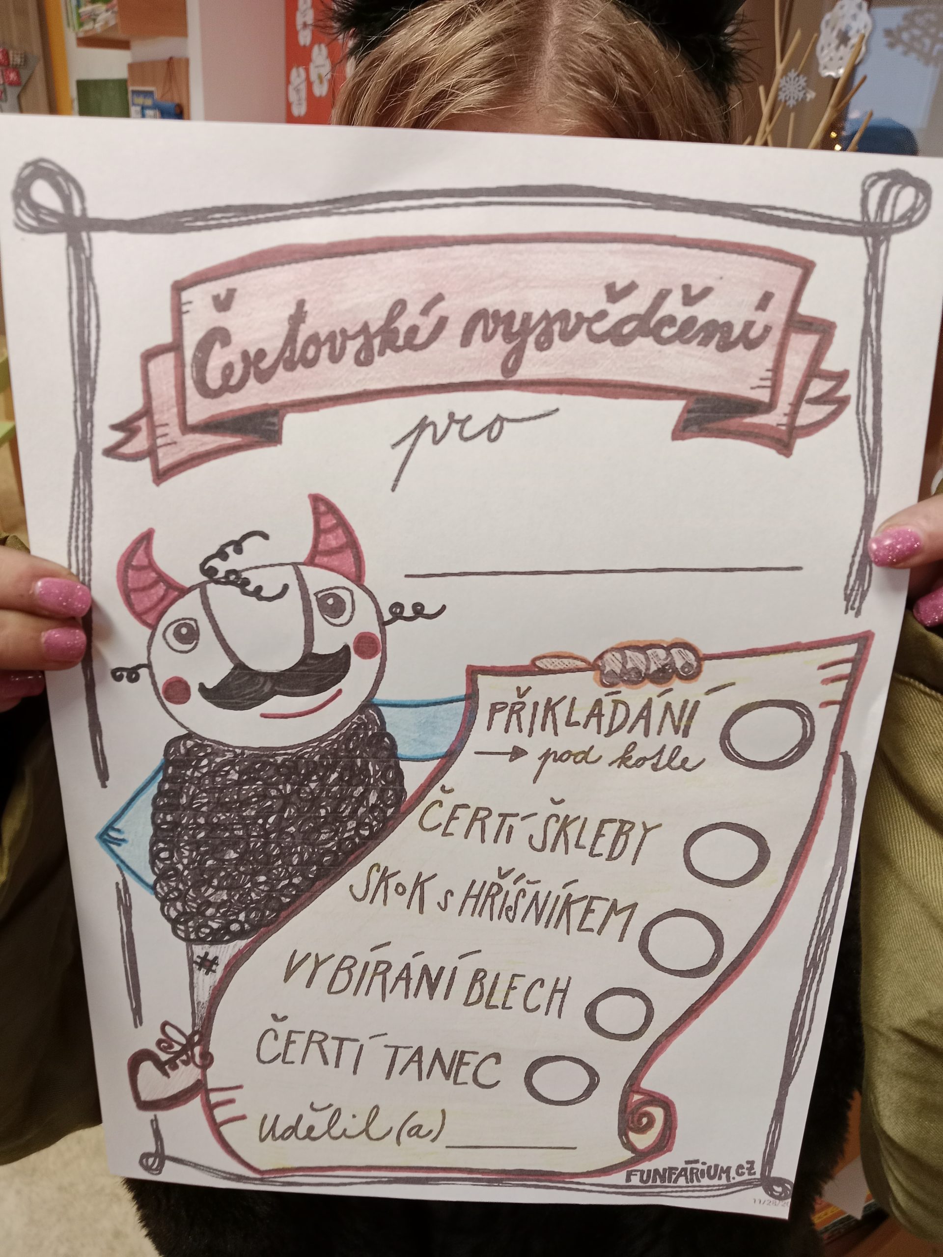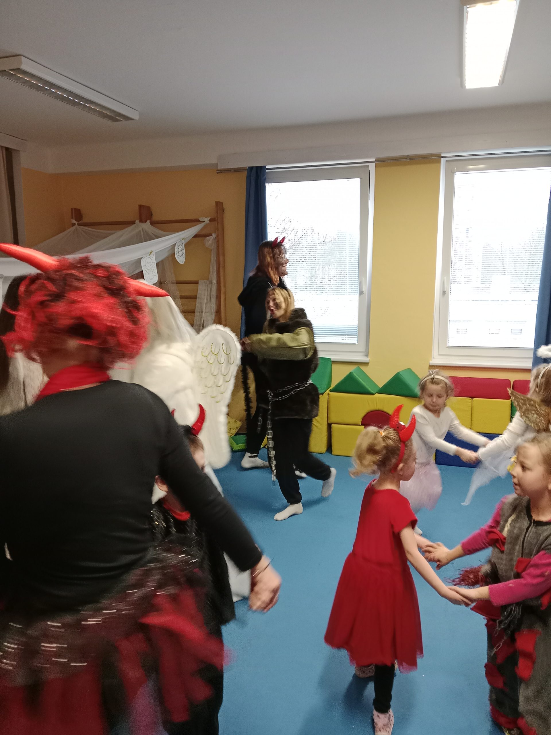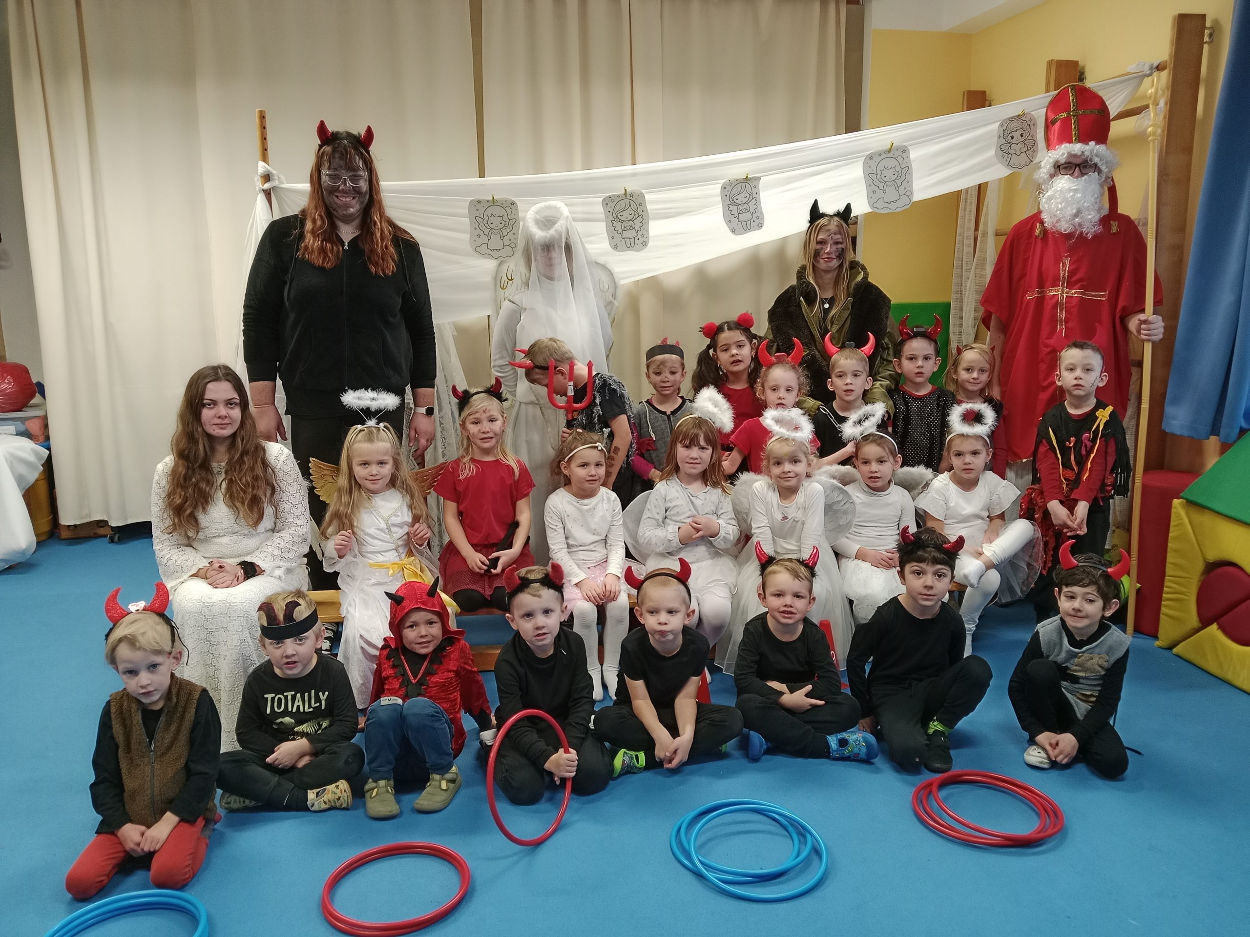 Studenti prvního až čtvrtého ročníku oboru Sociální činnost tvořili Mikuláše, čerty a anděly v pátek 5. prosince 2025 v Hořicích v Mateřské škole Pod Lipou.