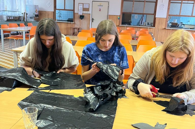 Žákyně z prvního ročníku sociální činnosti s paní vychovatelkou Douskovou připravují na domově mládeže výzdobu…