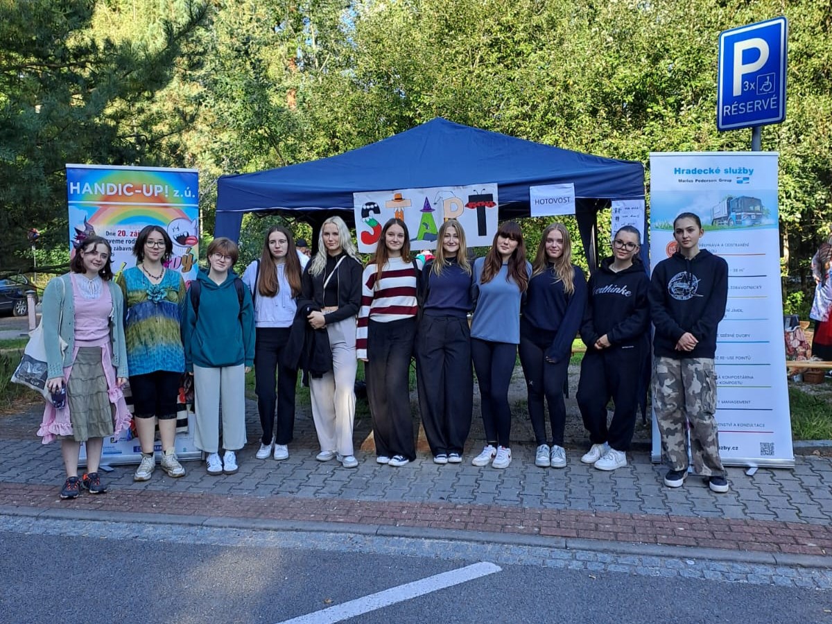 Naše studenty oboru sociální činnost jste mohli v sobotu 20. září 2025 potkat i na různých stanovištích na zábavně-vzdělávací akci Pohádkový les v Hradeckých městských lesích, kde si děti mohly vyzkoušet aktivity přibližující problematiku různých zdravotních handicapů.