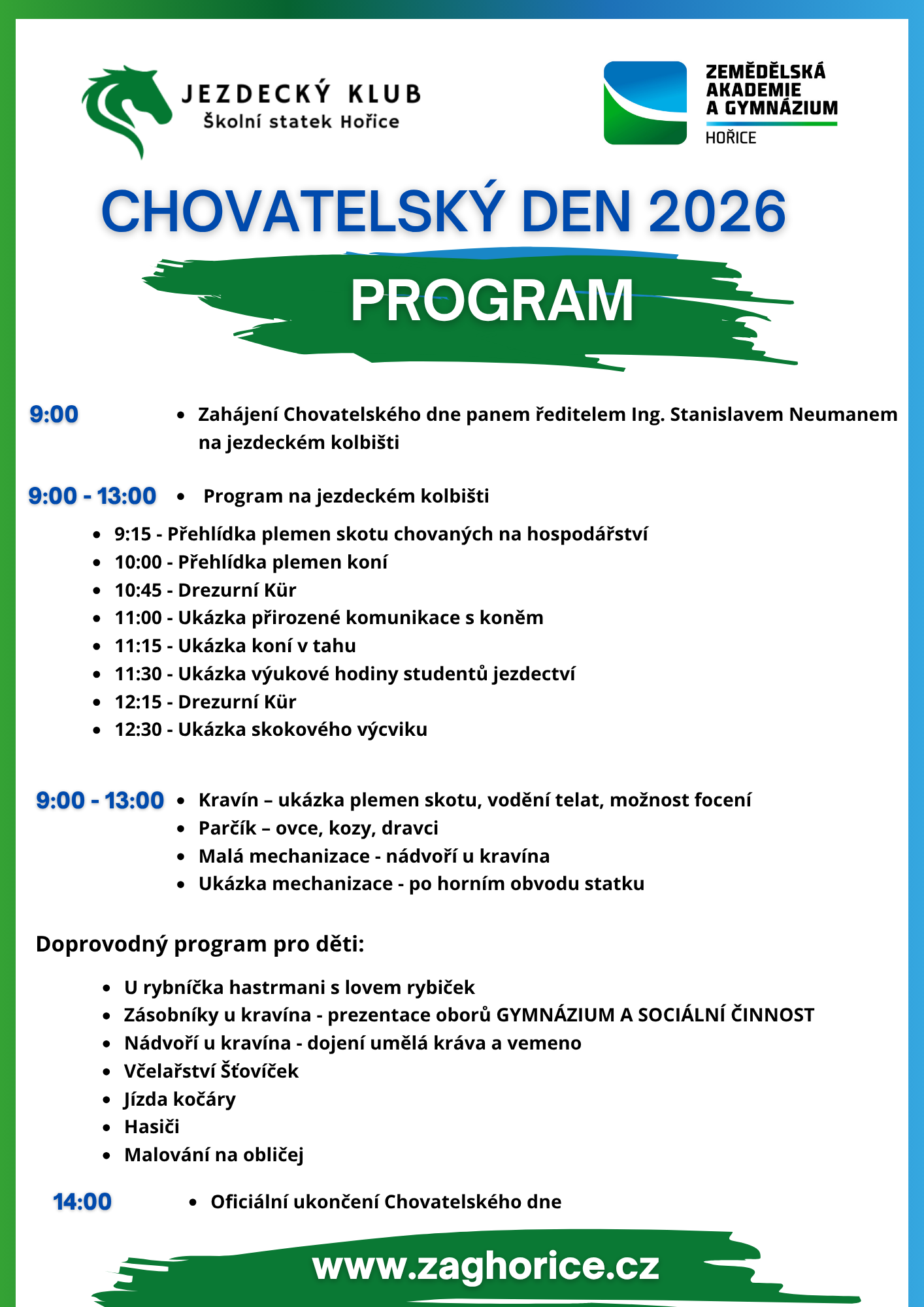 Jezdecký klub Školní statek Hořice z. s. ve spolupráci se Zemědělskou akademií a Gymnáziem Hořice zve širokou veřejnost na CHOVATELSKÝ DEN.
