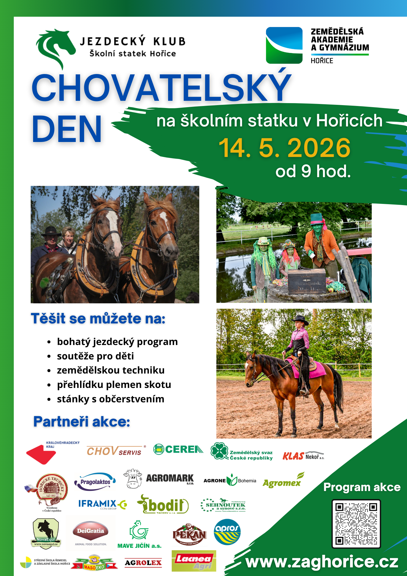 Jezdecký klub Školní statek Hořice z. s. ve spolupráci se Zemědělskou akademií a Gymnáziem Hořice zve širokou veřejnost na CHOVATELSKÝ DEN.