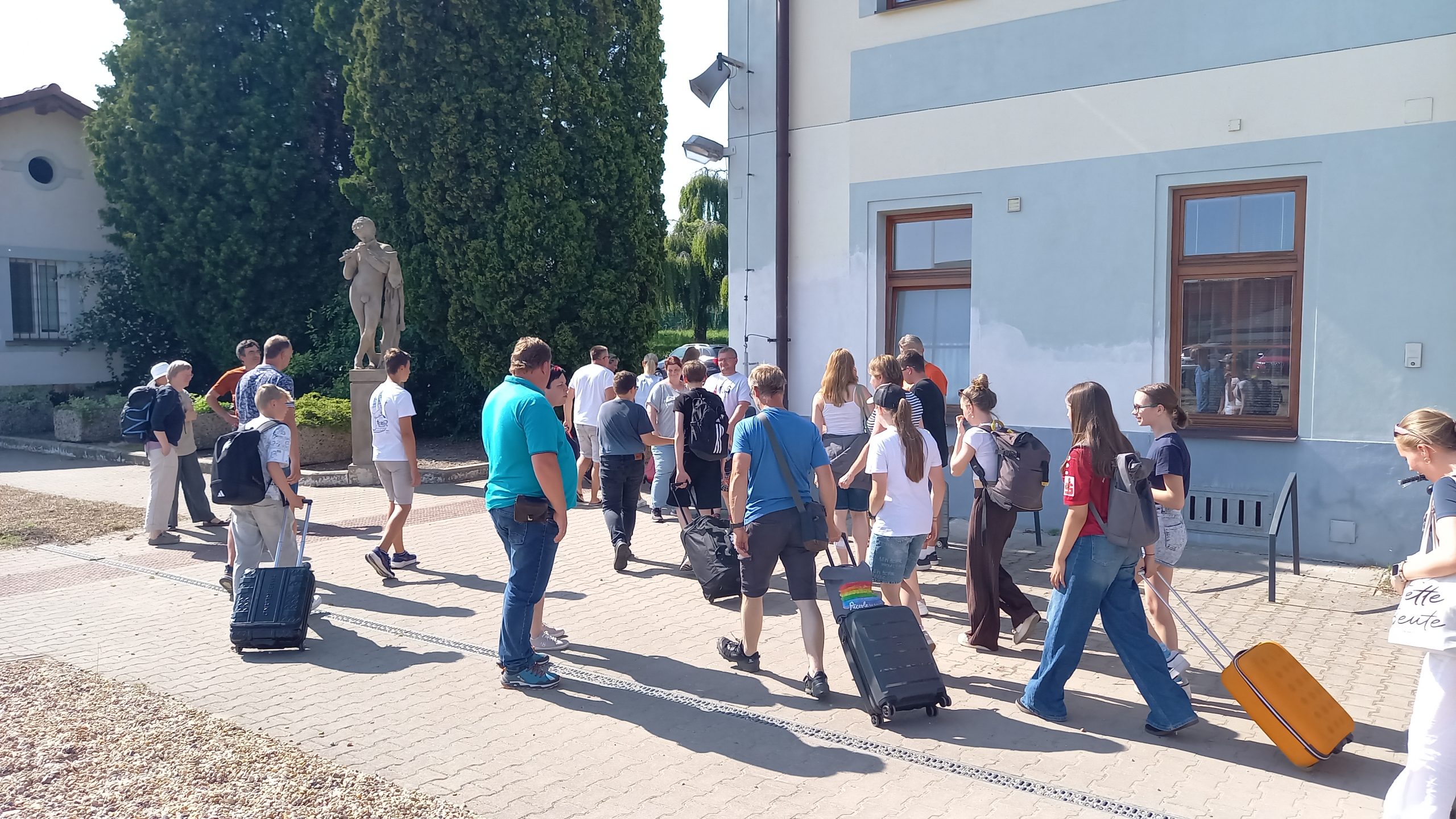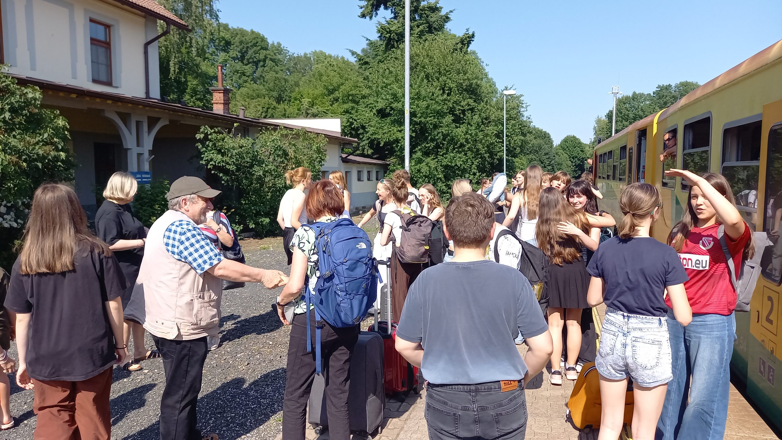 Dne 15. června 2025 v 16 hodin očekávalo na hořickém nádraží našich 15 studentů ze sekundy až kvarty se svými rodiči příjezd 15 lužických studentů v doprovodu dvou učitelek. Naši studenti se uvítali se svými kamarády a odvezli si je domů, kde prožili zbytek nedělního odpoledne v hostitelských rodinách.