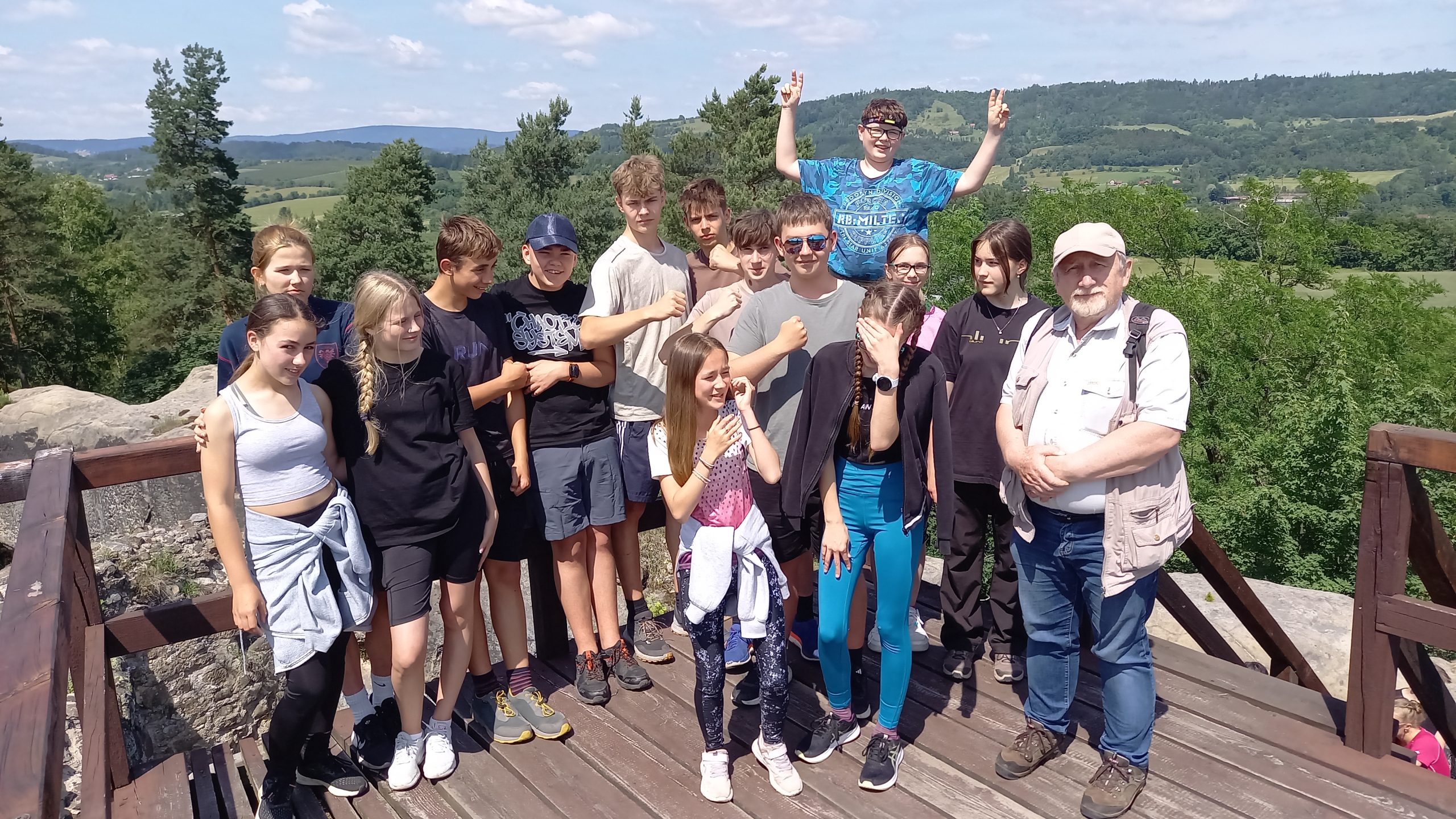 V úterý 17. června jsme pro naše i lužické studenty zorganizovali výlet autobusem do Českého ráje. Nejprve jsme zavítali do Turnova, kde jsme si prohlédli muzeum s historií horolezectví, expozici polodrahokamů, historii a etnografii a po obědě jsme dojeli do Klokočských skal, kde jsme obdivovali zříceninu hradu Rotštejna a navštívili jsme i velikou jeskyni Ameriku a několik dalších.