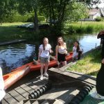 Druhý den v pondělí 5. června jsme se vydali na kolech z Chotěbuzi do 25 km vzdálených Borkow, které leží na okraji malebné a turisticky velmi atraktivní oblasti Blot (něm. Spreewald), kde jsme pluli na kánoích po ramenech řeky Sprévy a lužičtí studenti nám vyprávěli při procházce o lužických bájných bytostech jako je např. wodny muž, bludniki, pśezpoldnica (polednice) a další.