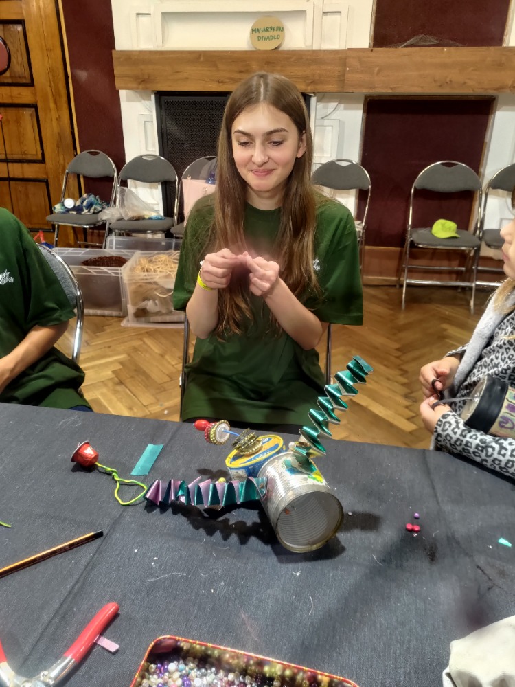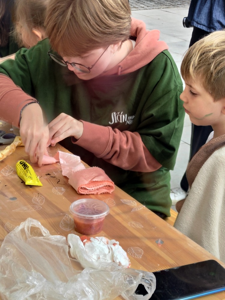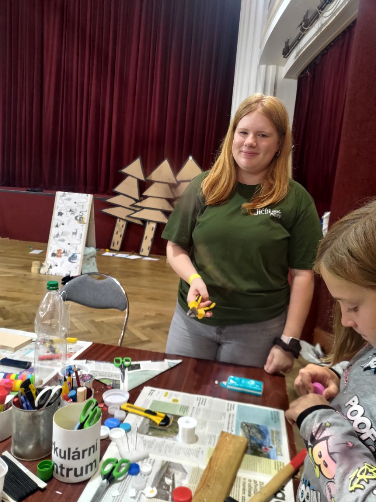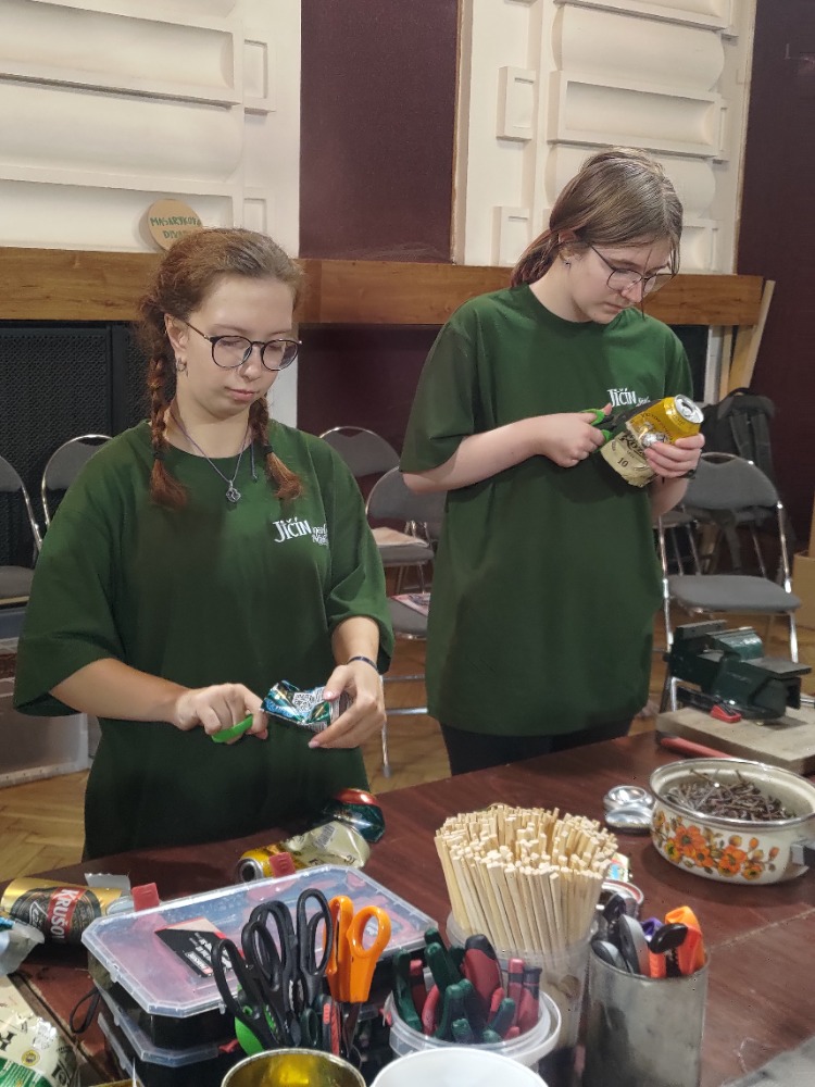 Studenti prvního, druhého a třetího ročníku oboru sociální činnost s paní vychovatelkou Douskovou pomáhali na 35. ročníku festivalu Jičín –  město pohádky na Pohádkové stezce “Cesta zahradníka” v tvořivých dílničkách na téma recyklace.