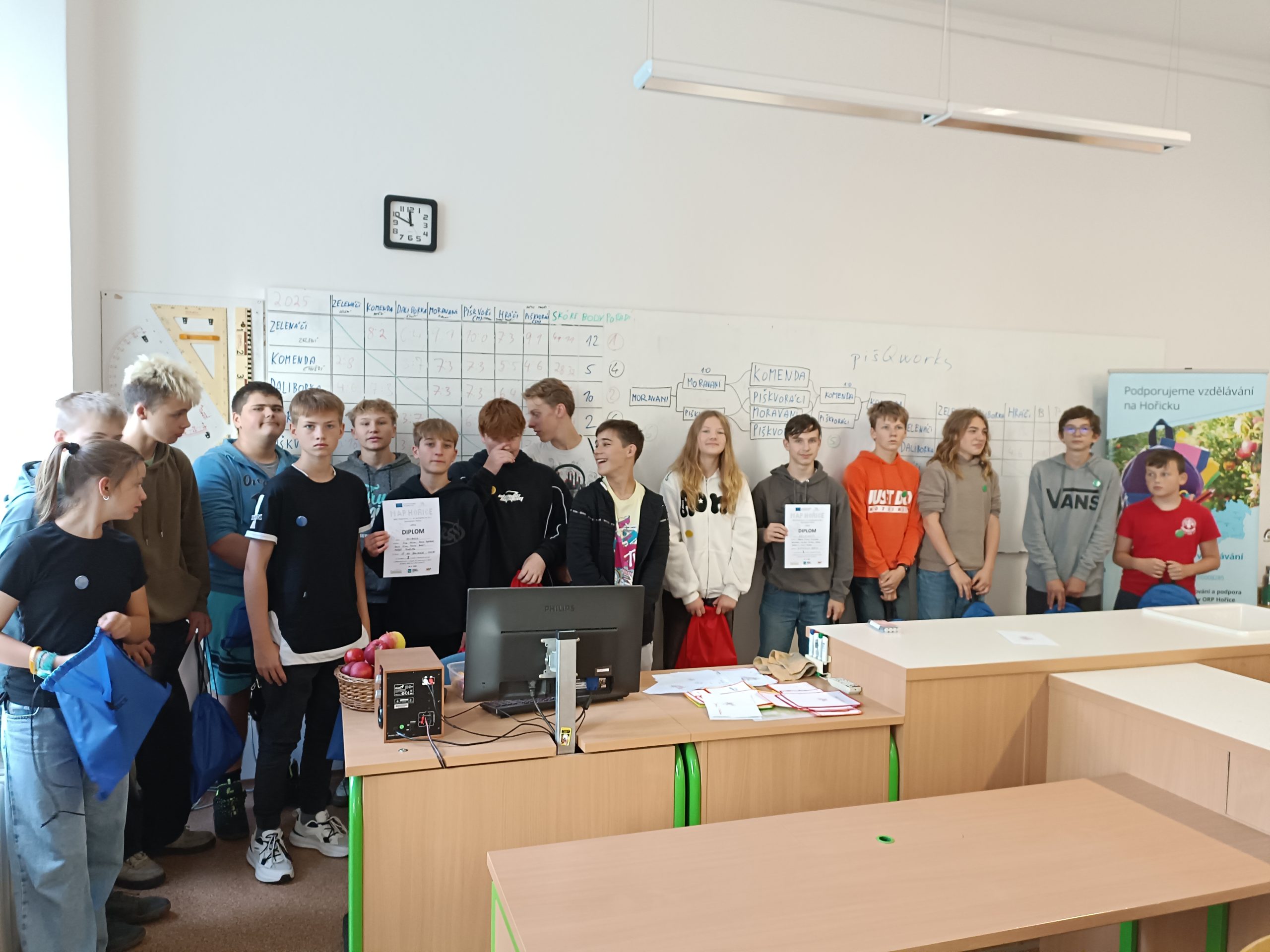 V pátek 19. 6. 2025 proběhl další ročník turnaje ZŠ z Hořicka v piškvorkách. Tuto akci naše škola už tradičně pořádá ve spolupráci s MAS Podchlumí. Letos se sešlo celkem 7 pětičlenných týmů, které nejprve hrály každý s každým a poté jsme 4 slabší týmy nechali hrát play-off o 4. – 7. místo a 3 nejsilnější týmy si ve finálové skupině znovu zahrály každý s každým.